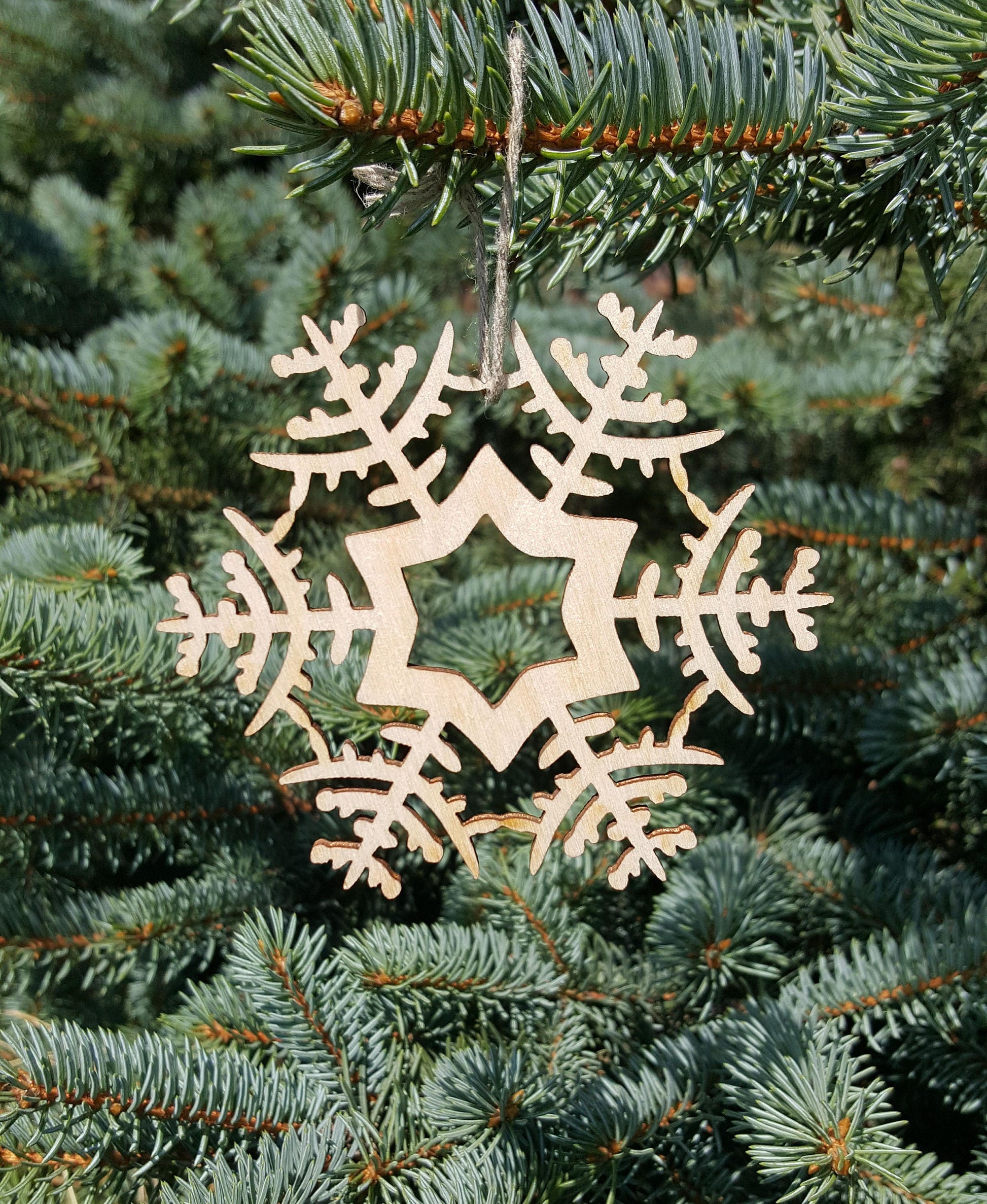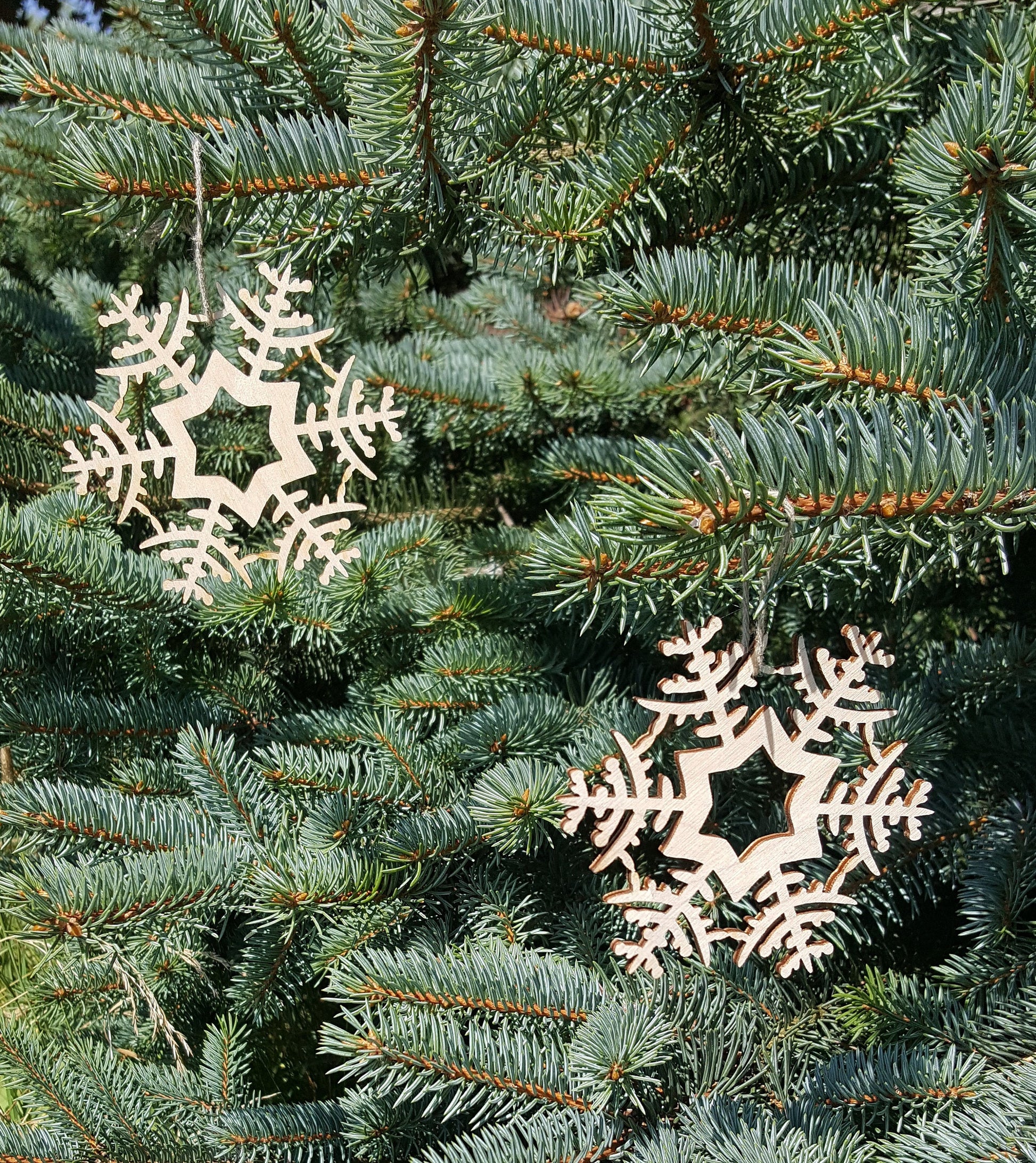 Weihnachtsschmuck aus Holz, Weihnachtsbaumschmuck aus Holz, Schneeflocken-Baumschmuck, lasergeschnittene Schneeflocken-Baumspielzeug-Set