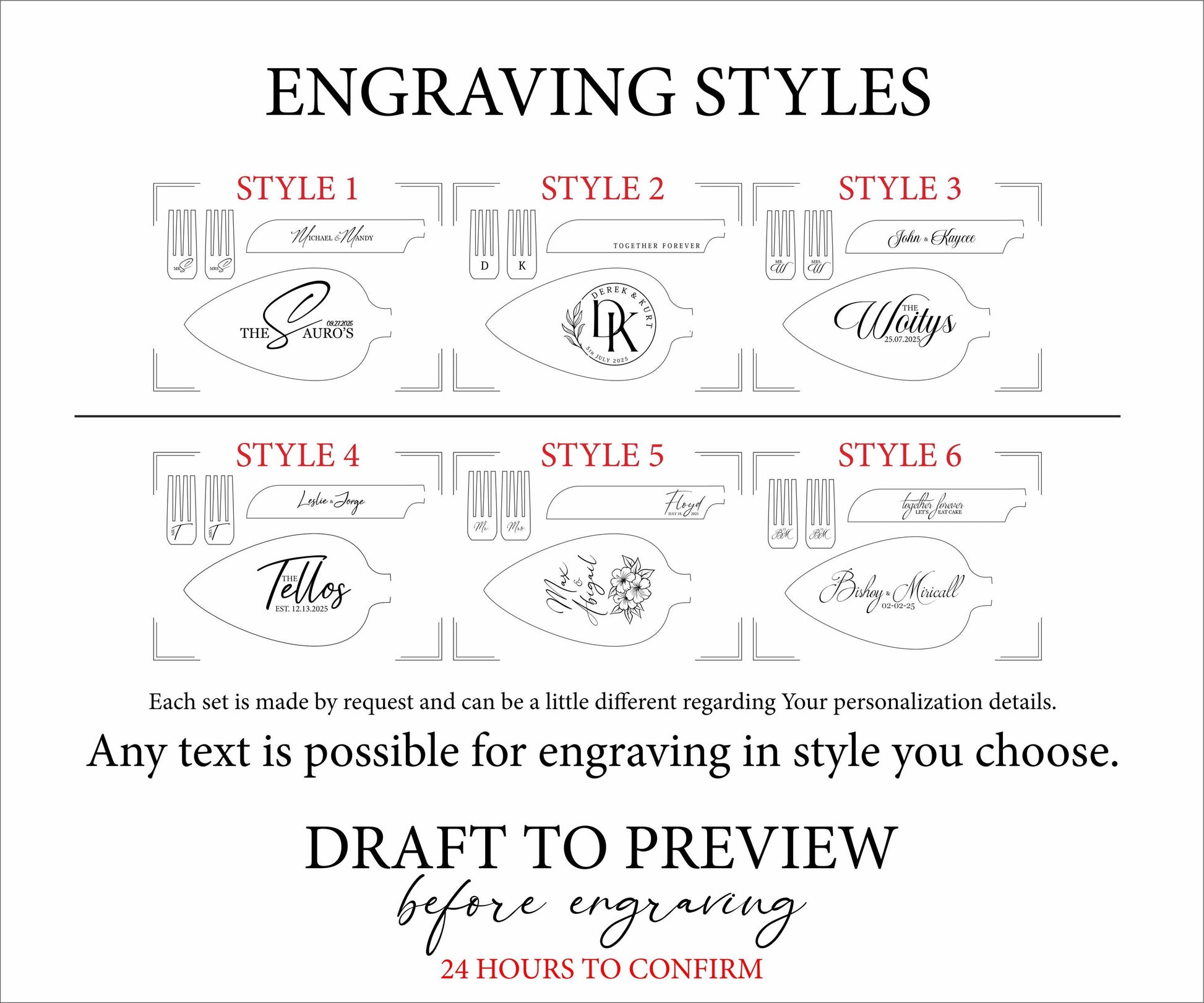 * Wählen Sie Ihren bevorzugten Gravurstil (siehe letztes Foto).