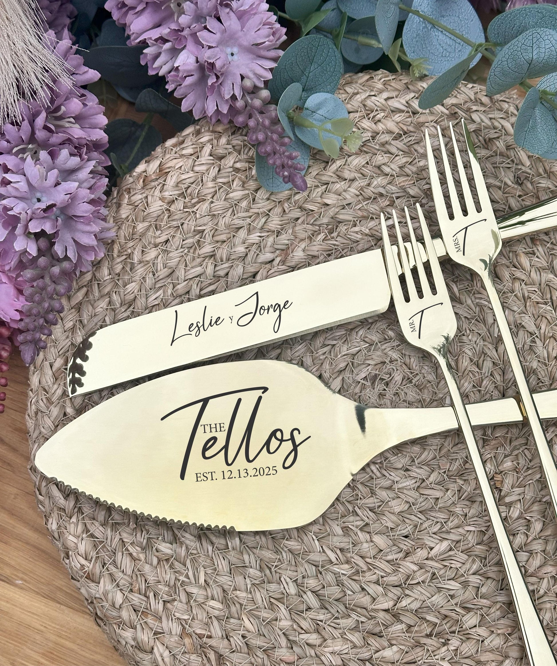 Individuell graviertes Tortenschneideset für den Tisch des Brautpaares: Einzigartiges Geschenk zur Hochzeitsfeier, zum Junggesellinnenabschied oder als Erinnerungsstück zum Jahrestag