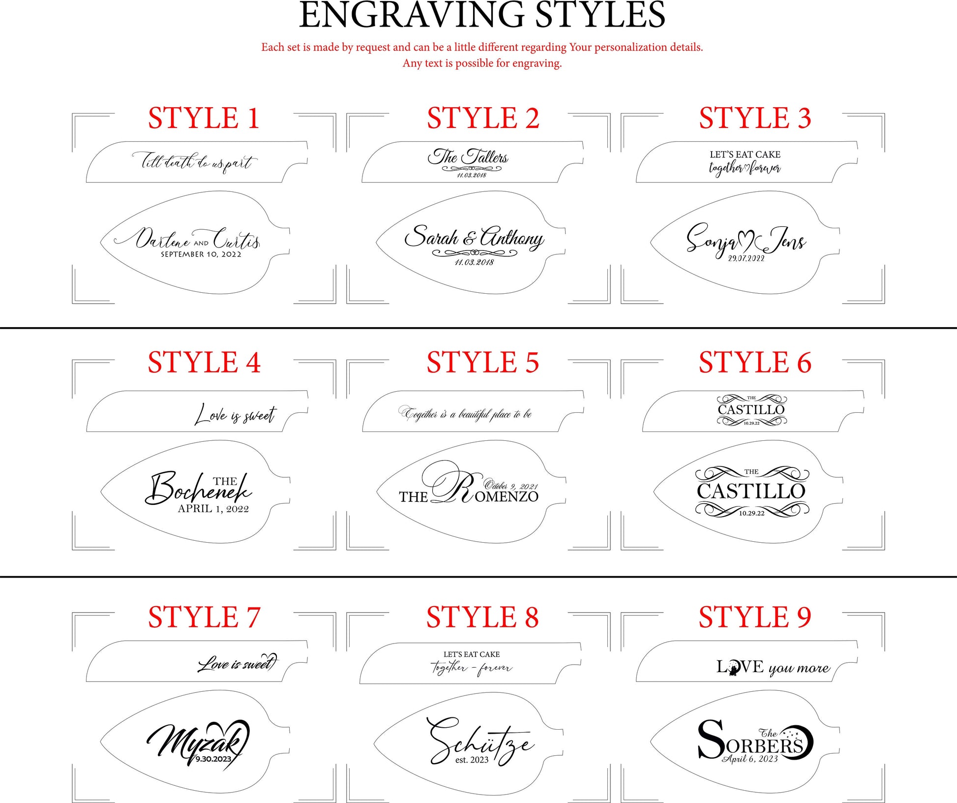 Individuell graviertes Hochzeitstorten-Anschneideset: Personalisiertes Edelstahlmesser und -heber