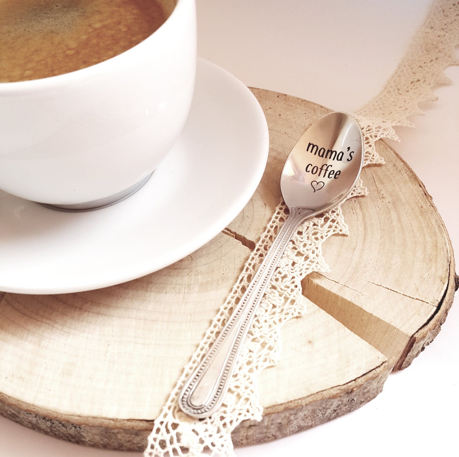 Muttertagsgeschenk, Kaffeelöffel für Mama, personalisiertes Küchengeschenk für Mama von Tochter, Sohn oder Kindern, gravierter Teelöffel für Mama, Löffel mit Spruch