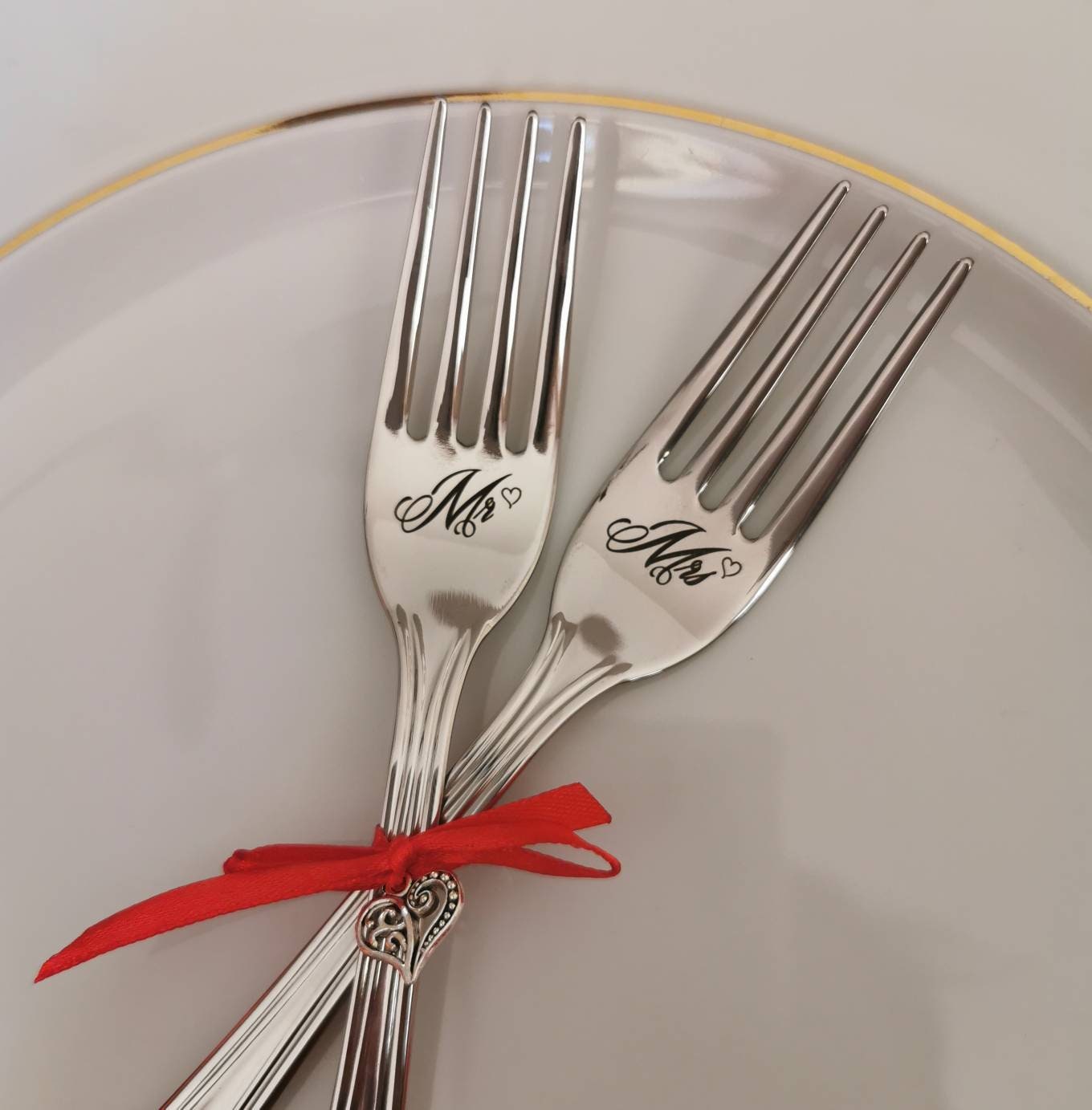 Personalized Mr & Mrs Forks: Engraved Stainless Steel Wedding Keepsake