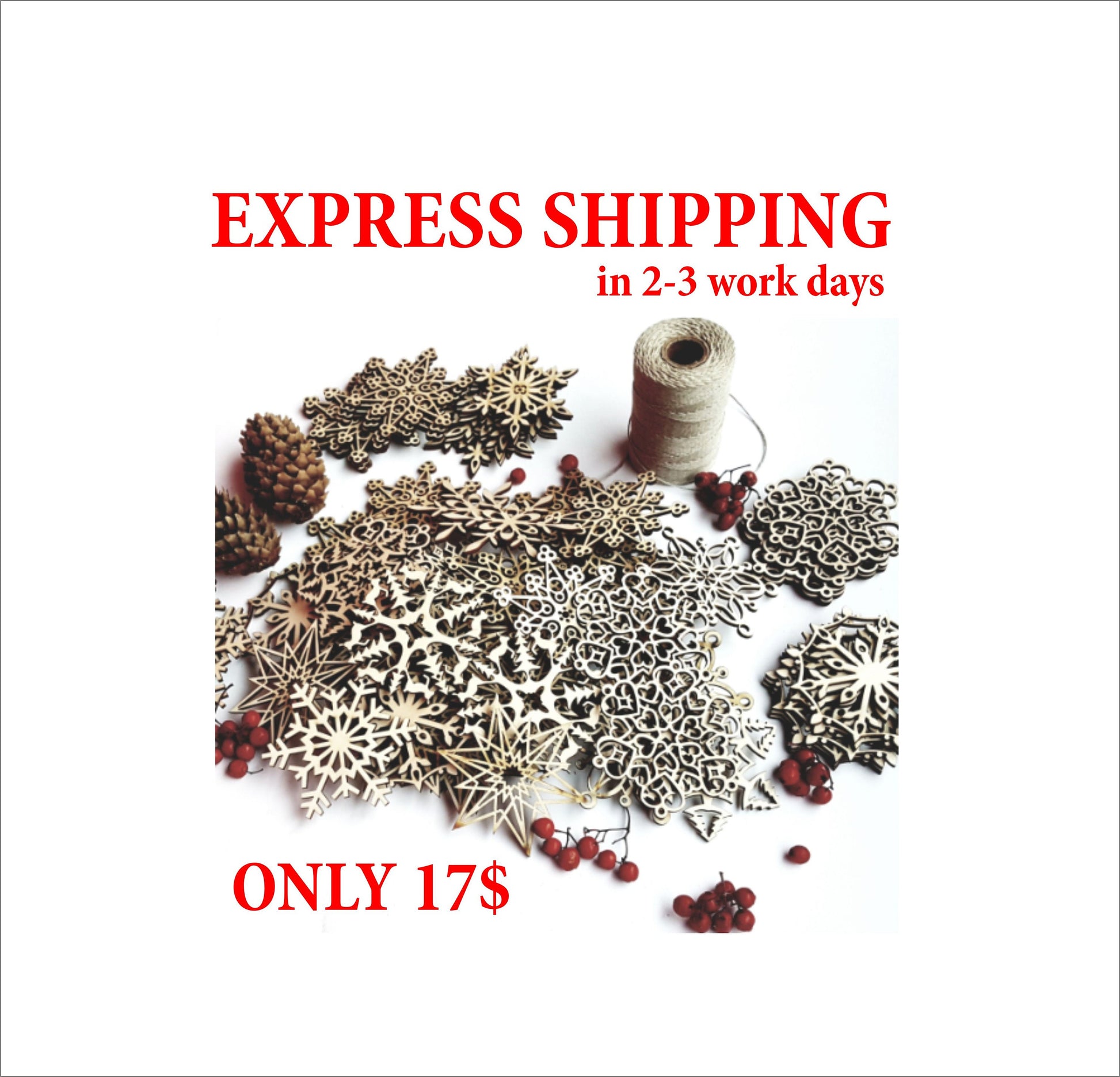 Dieses Angebot umfasst 32 oder 48 lasergeschnittene Holzschneeflocken mit EXPRESS-Versandoption.