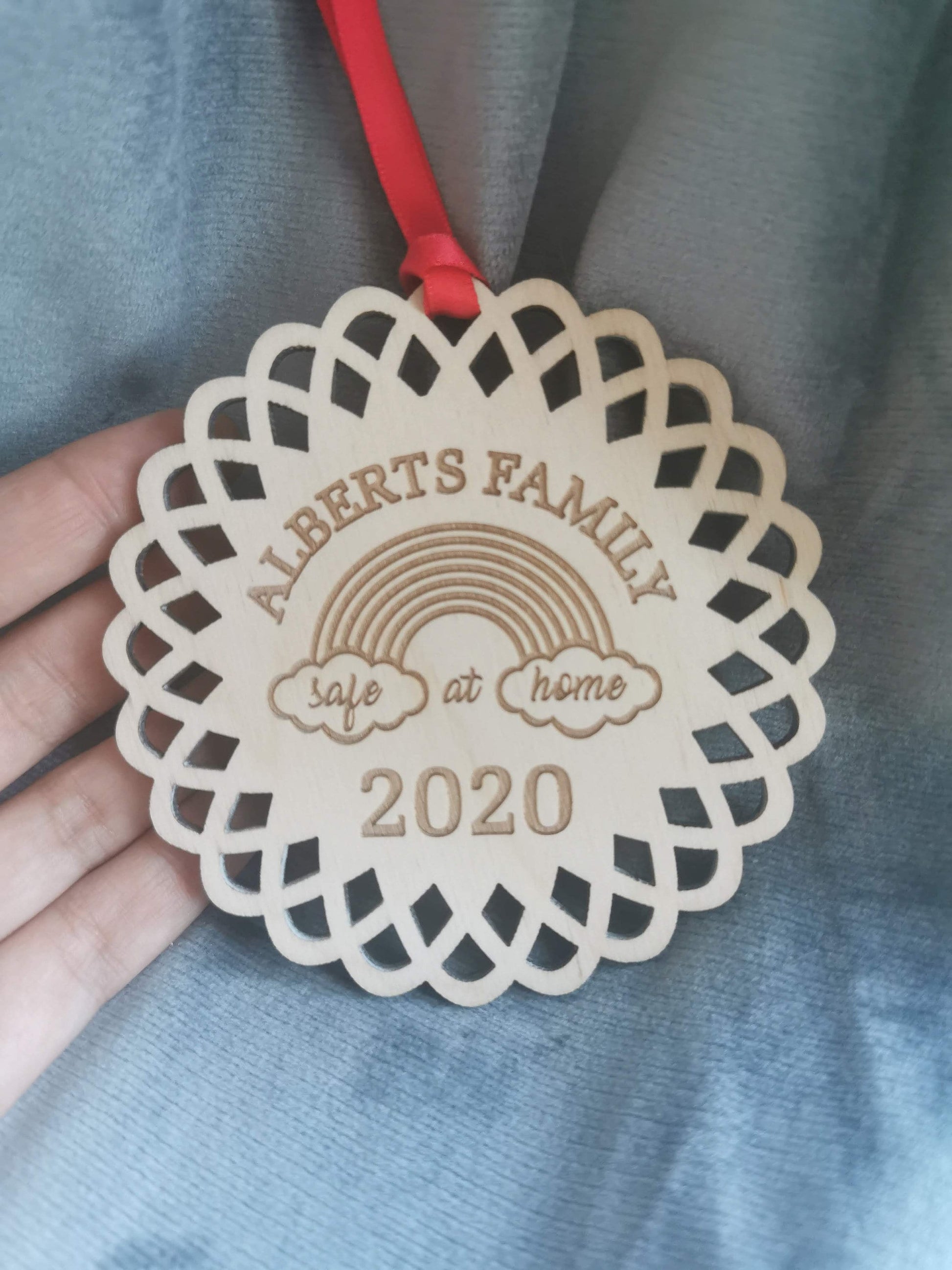 Awesome wooden Christmas decoration with engraved text for 2020. A perfect pandemic keepsake bauble for your family, friends or yourself, office present.