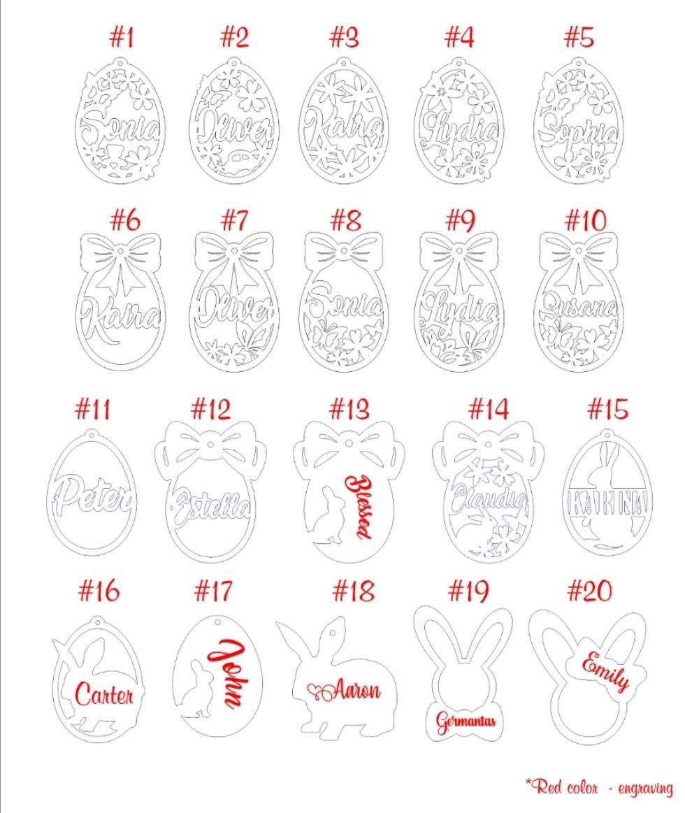 A cute little personalized laser cut Easter eggs. Funny gift for your kids, friends, grandparents. This listing is for 5 wooden eggs with custom names (can ve different for each egg)
