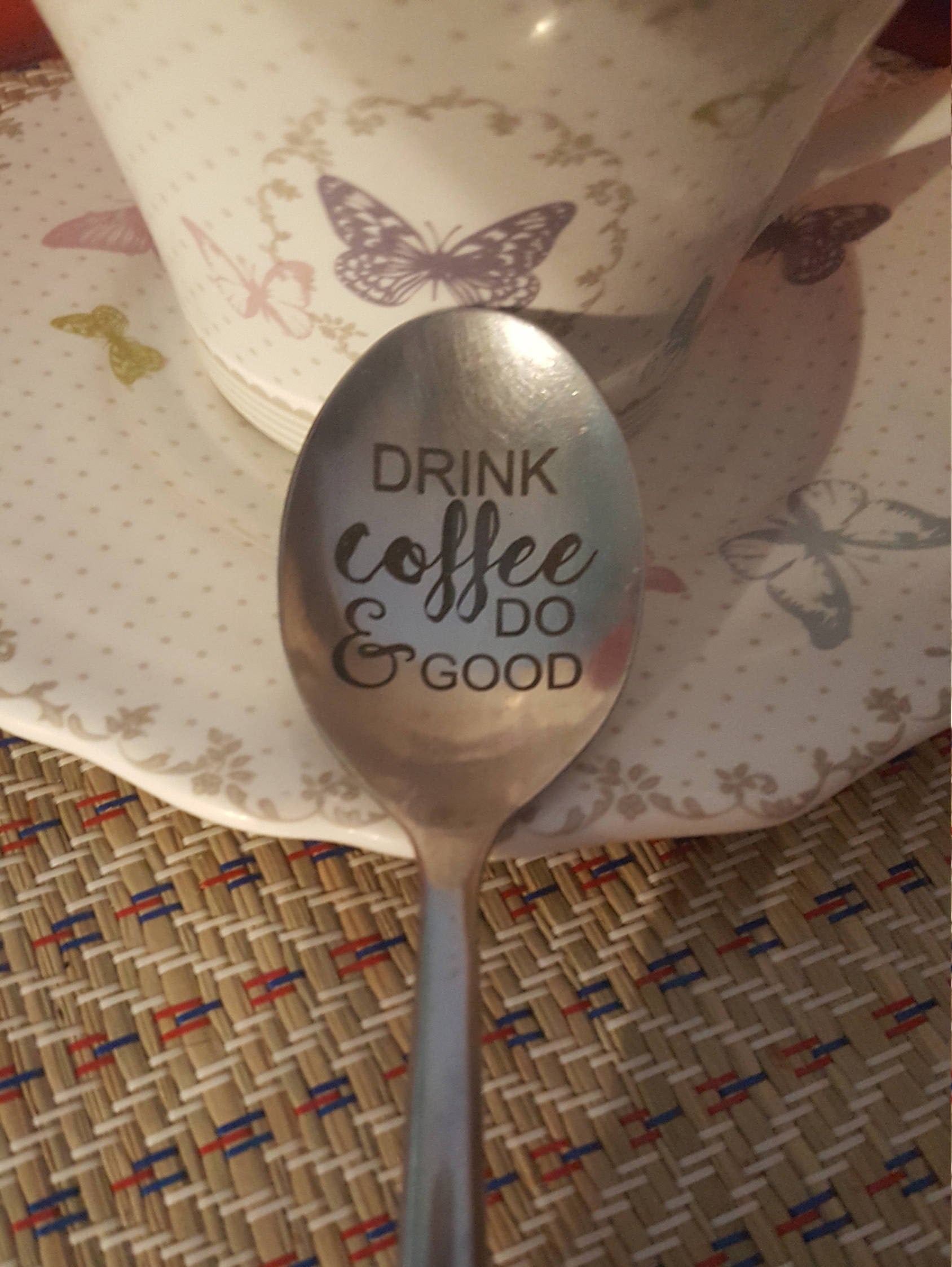 This listing is for ONE coffee spoons with engraved text "Drink coffee and do good". Always a whimsical gift for your friend or yourself.