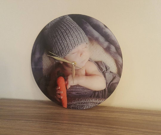 Custom acrylic wall clock with baby photo print, modern round clock, best gift for mother, grandparents, fathers day gift from daughter