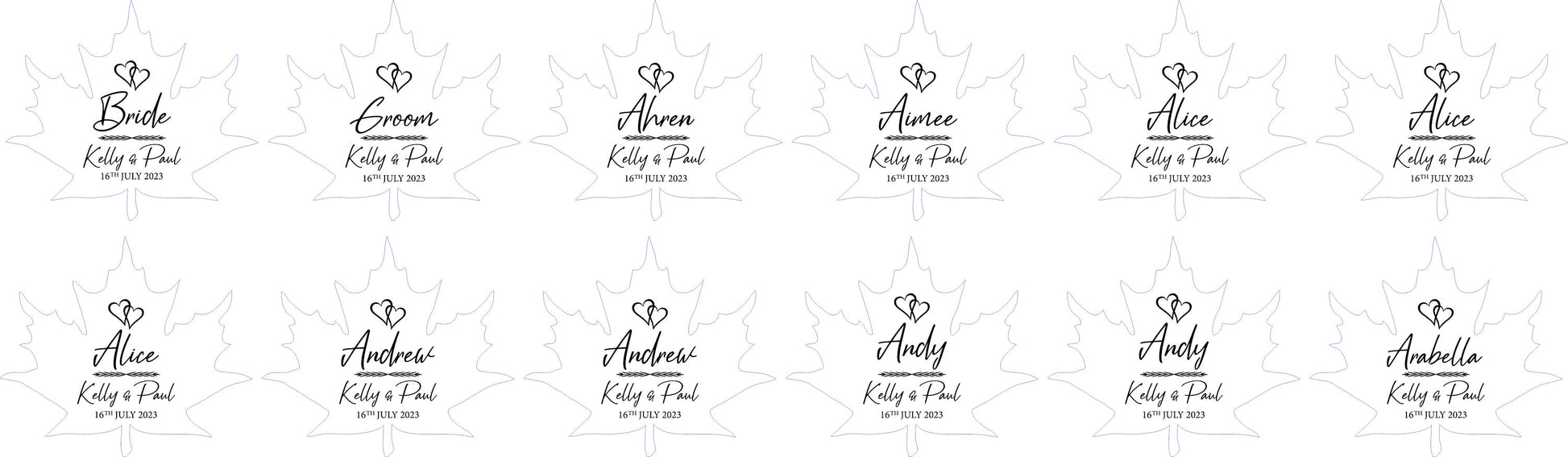 Custom Maple Leaf Wedding Place Cards: Laser Cut Wood Name Tags