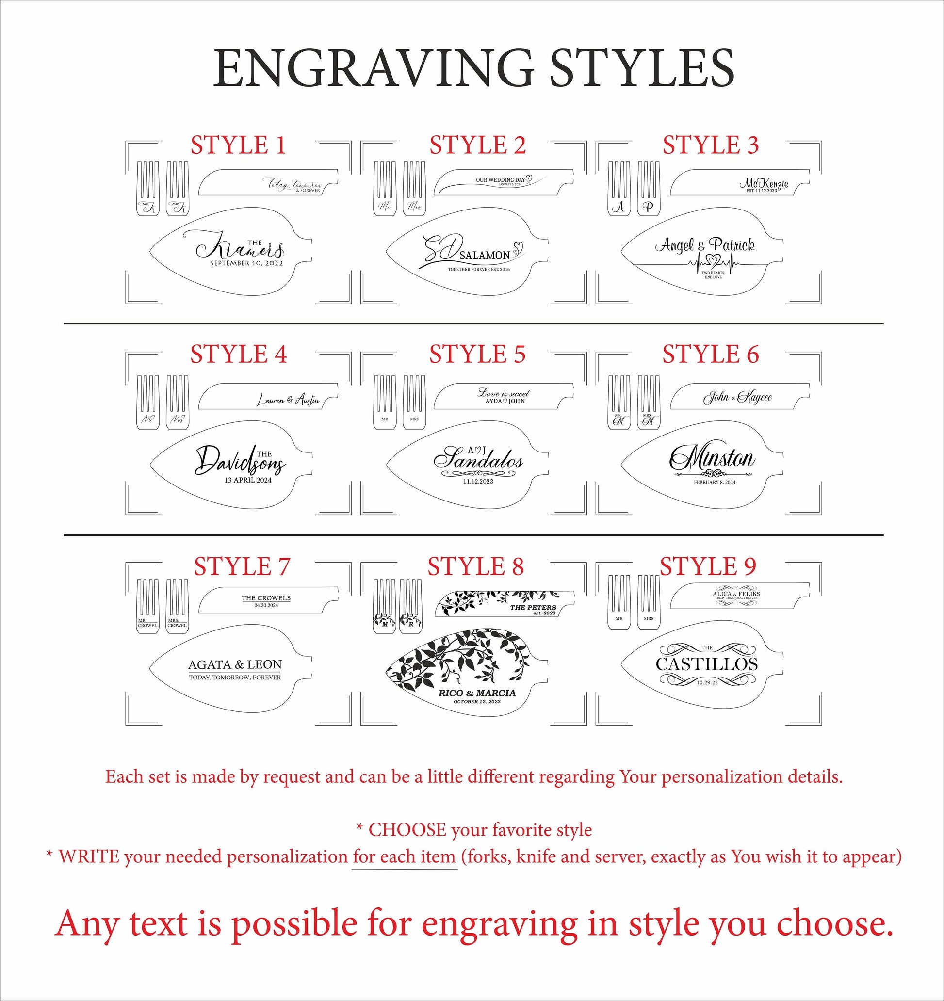 Bring family and friends together with this elegant engraved cake cutting set, complete with matching forks. Personalize with names, initials, a wedding date, or a meaningful phrase. This cutlery kit adds a romantic touch to any celebration while becoming a cherished keepsake for years to come.