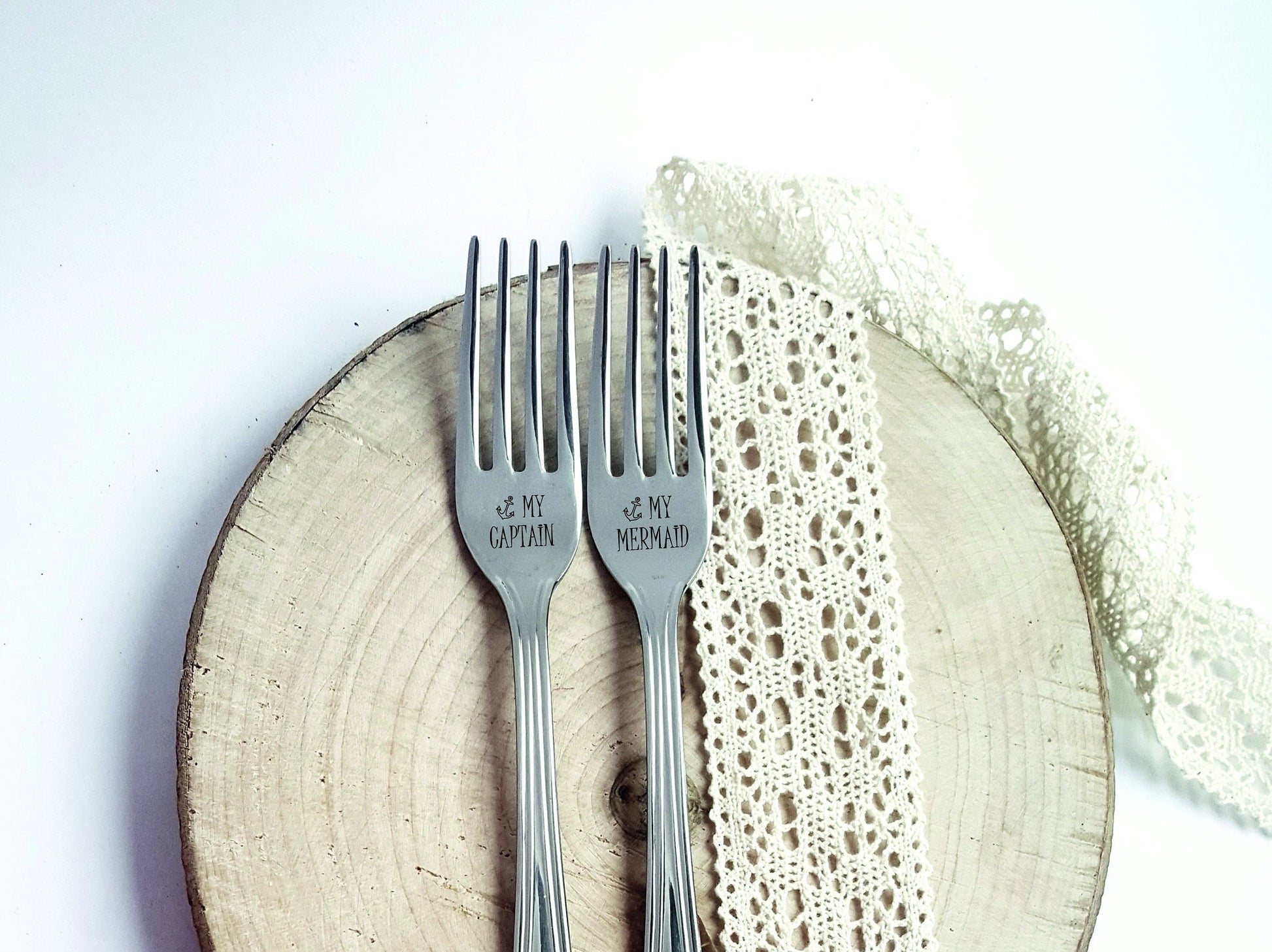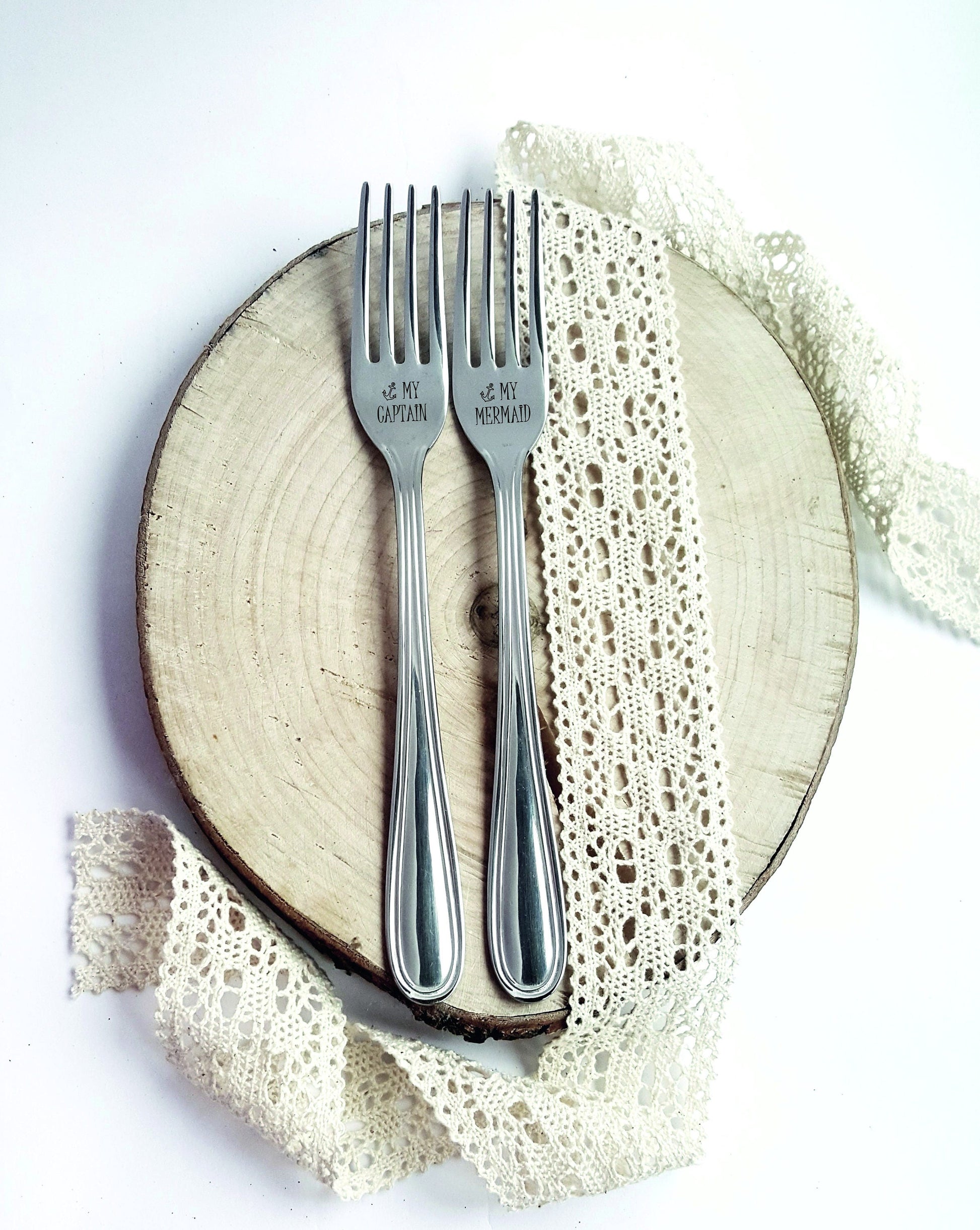 Engraved Anchor, Wedding Forks, Nautical Wedding Theme Bride and Groom, Beach Wedding Gift Idea, Engraved Forks, My Mermaid My Captain Gift