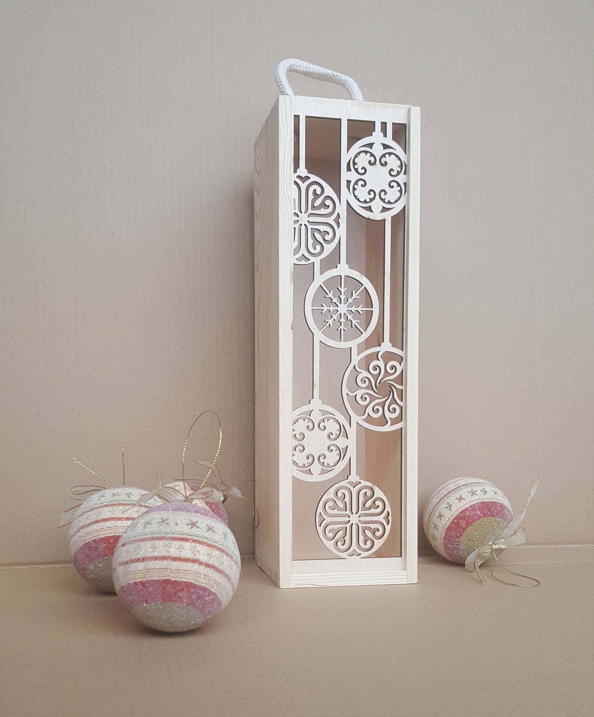 Engraved Christmas Wine Box: Laser Cut Wood Gift Case