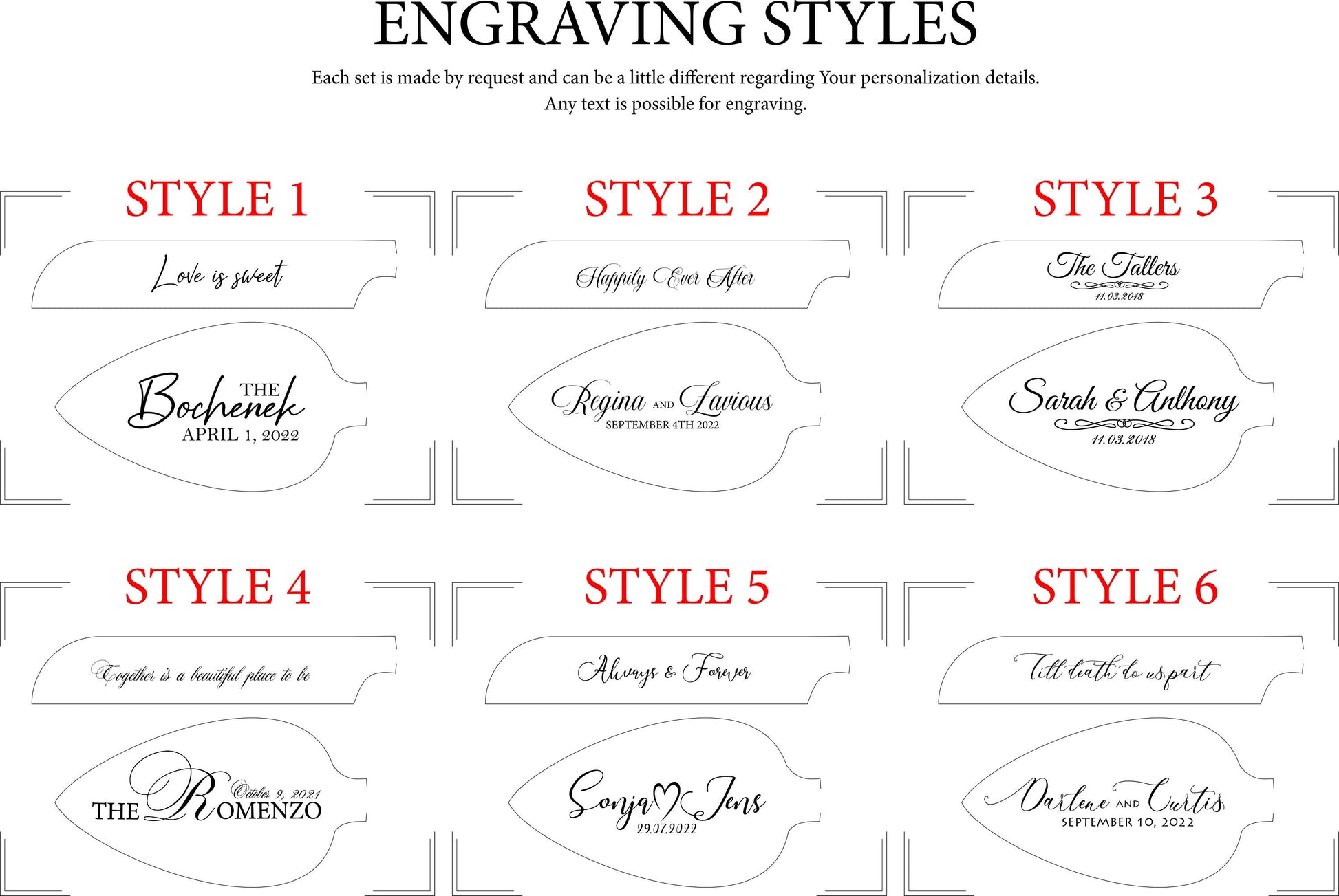 Please write all names, dates or engraving text exactly as you want them to appear. We copy text 1:1 including capitalization and punctuation.