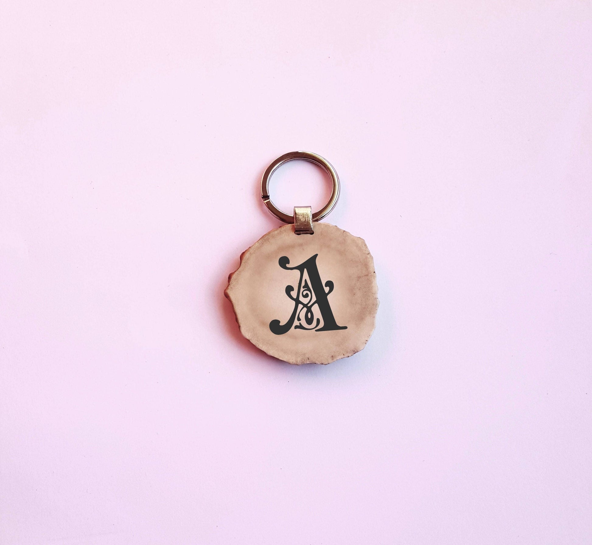 Keychain with engraved initial letter, Custom monogram keyring for mom, personalized monogramed gift, customized keychain