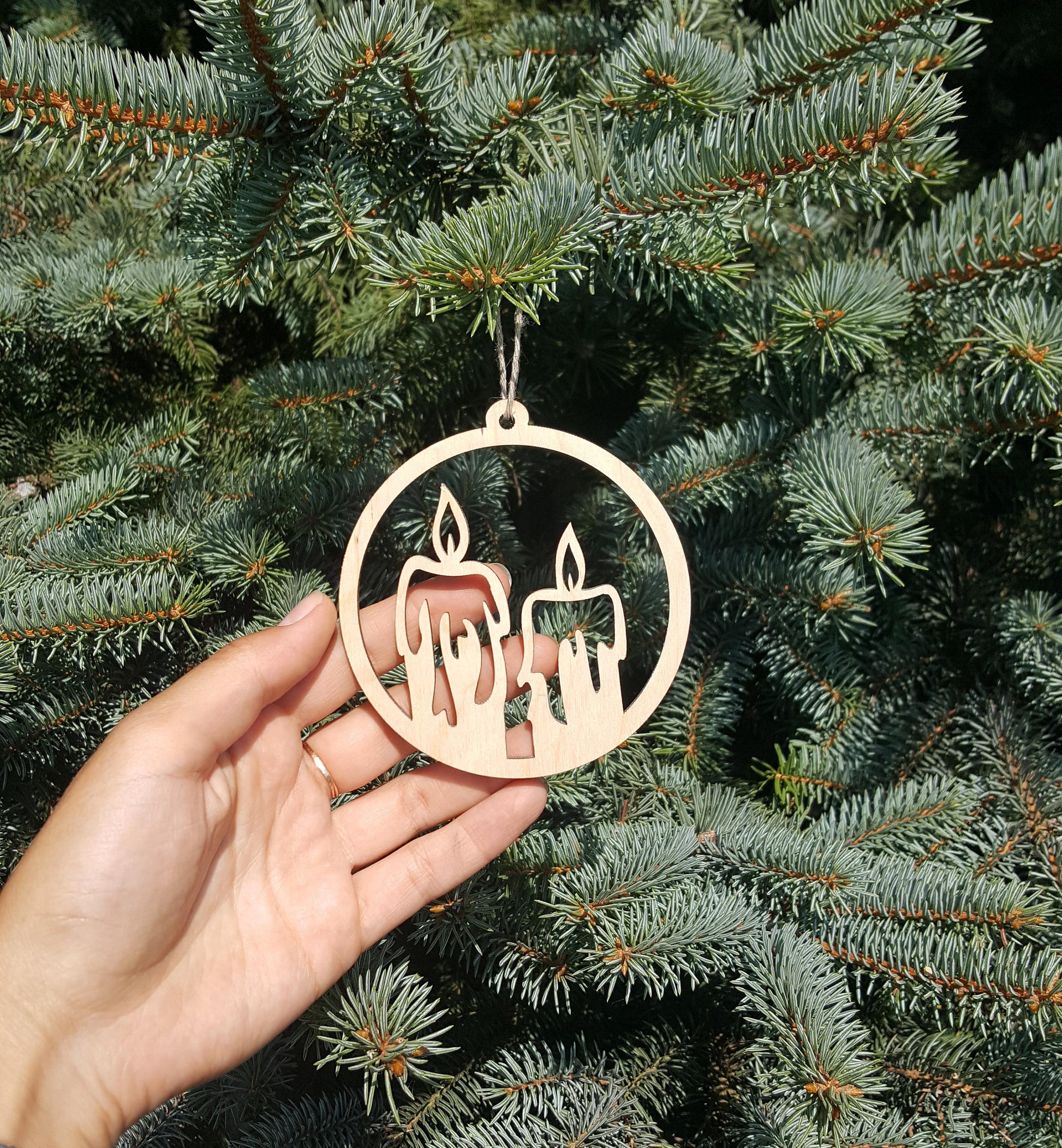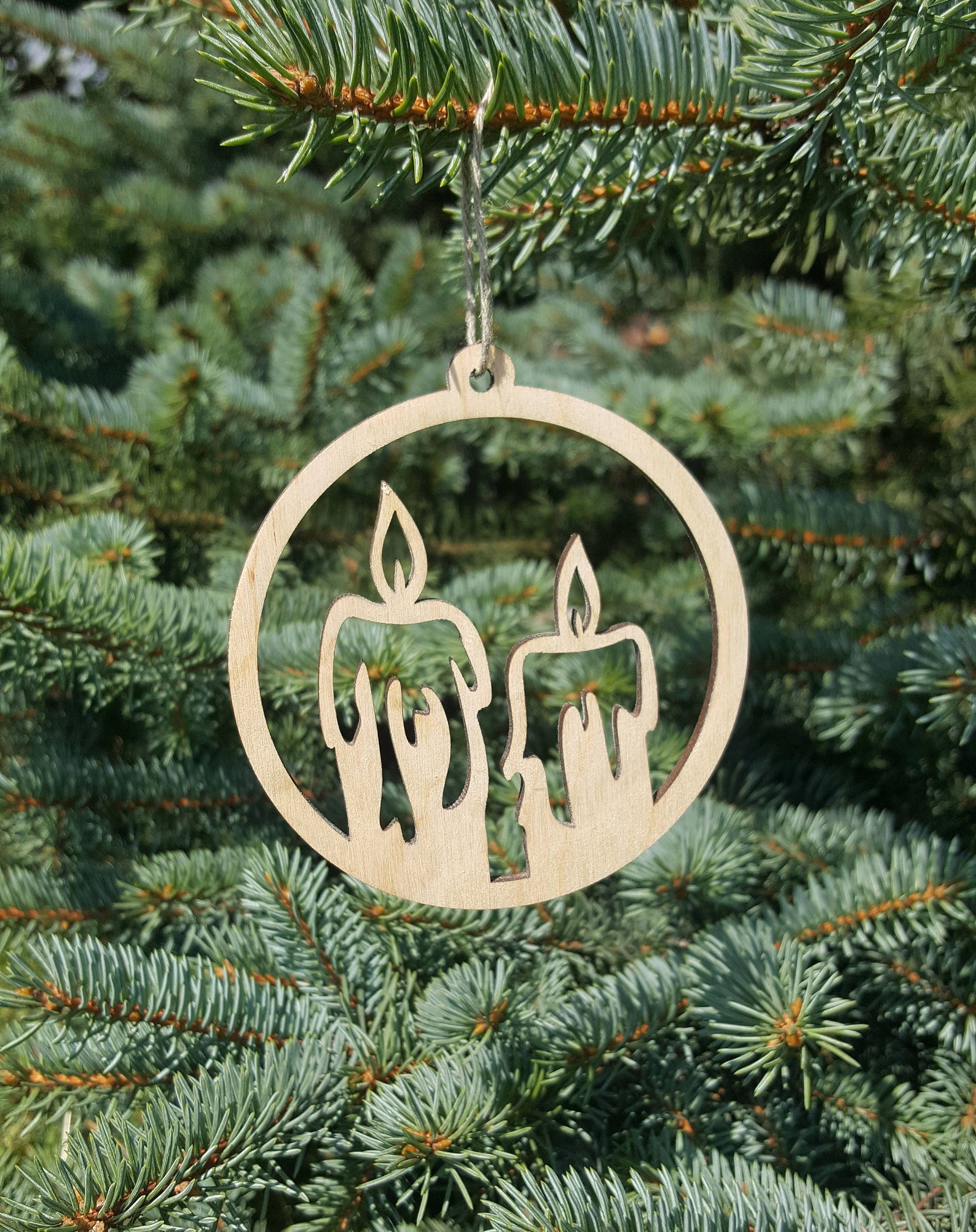Laser Cut Wood Christmas Ornament: Candle Decoration