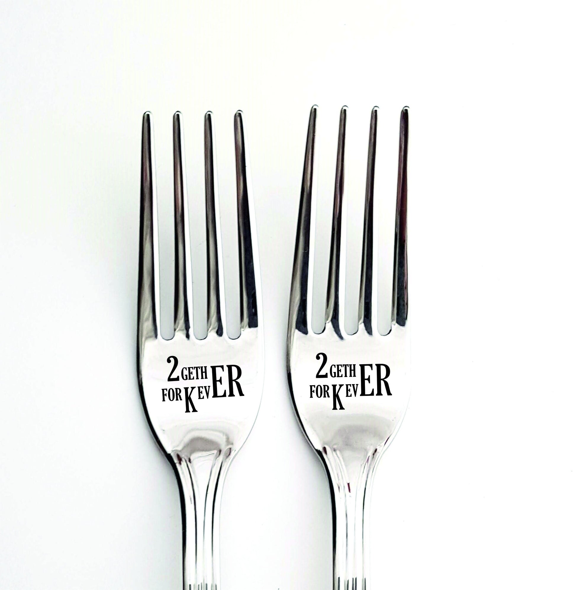 Unique personalized dining set of TWO forks for bride and groom.
