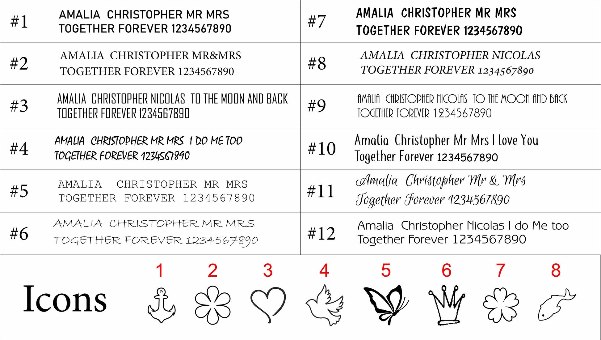 Please write all names, dates or engraving text exactly as you want them to appear. We copy text 1:1 including capitalization and punctuation.