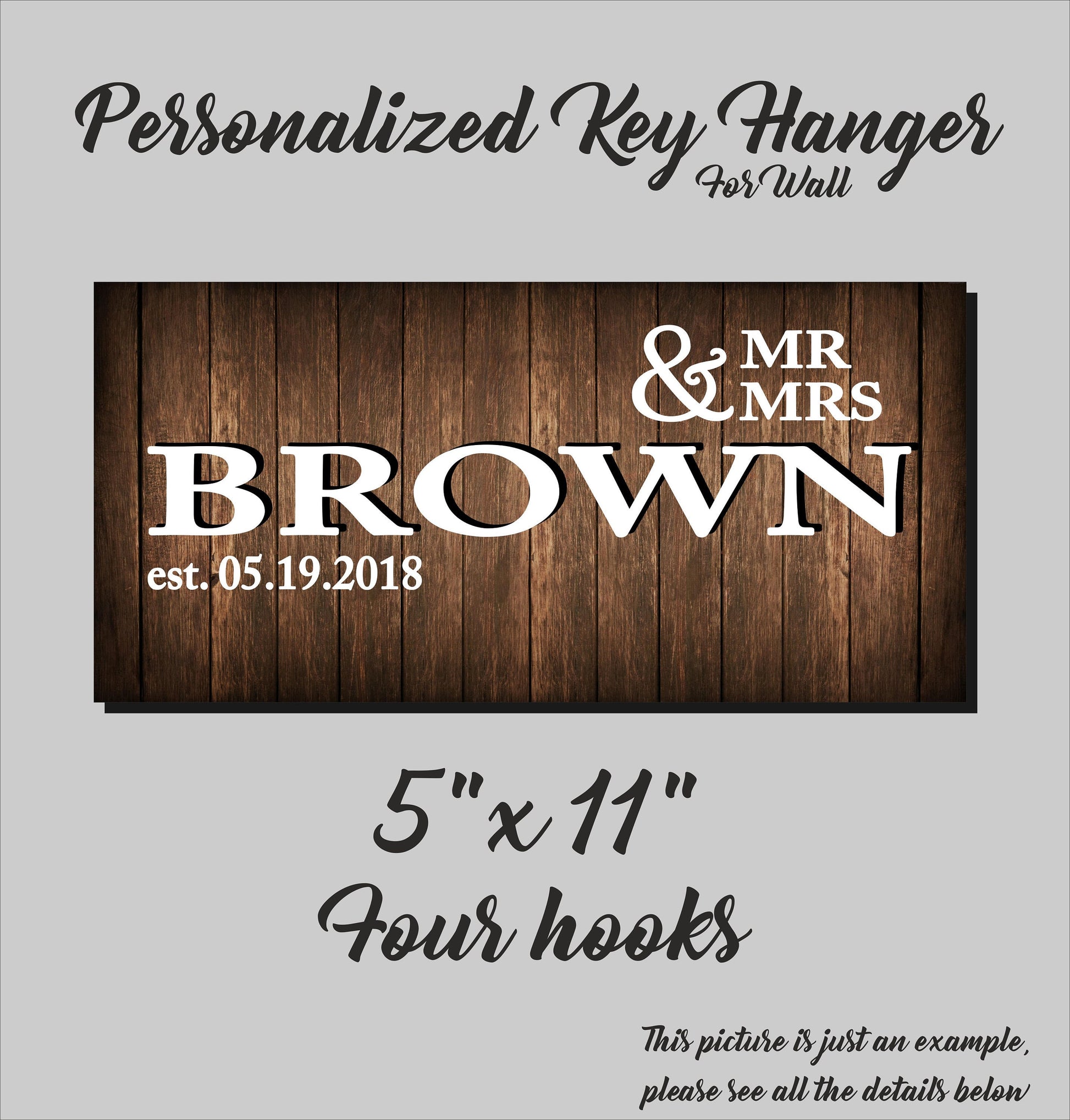Personalized Family Name Key Hanger: Rustic Wood Key Rack Organizer