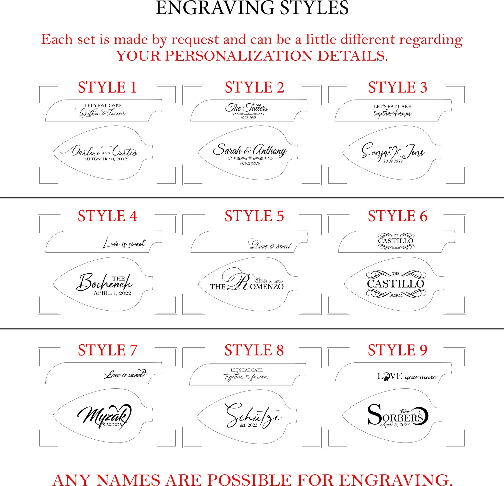 * Leave me personalization details during checkout. Any text can be engraved on the cake server and knife. Just write exactly as you wish it to appear.