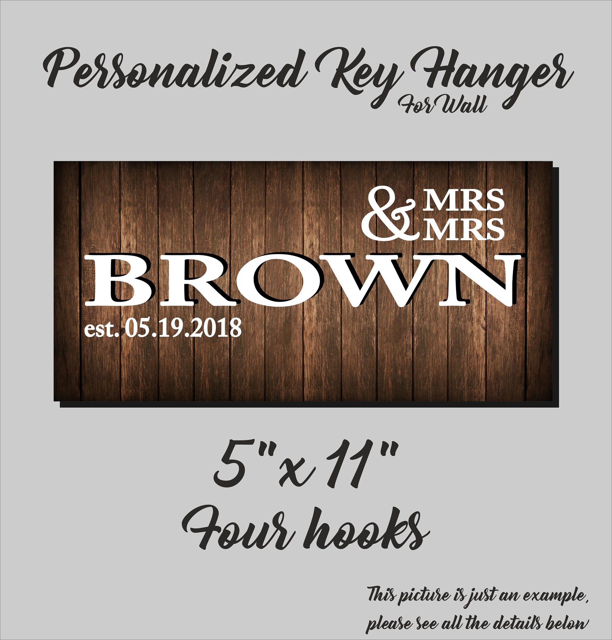 Personalized LGBT Wedding Key Hanger: Wooden Home Organizer