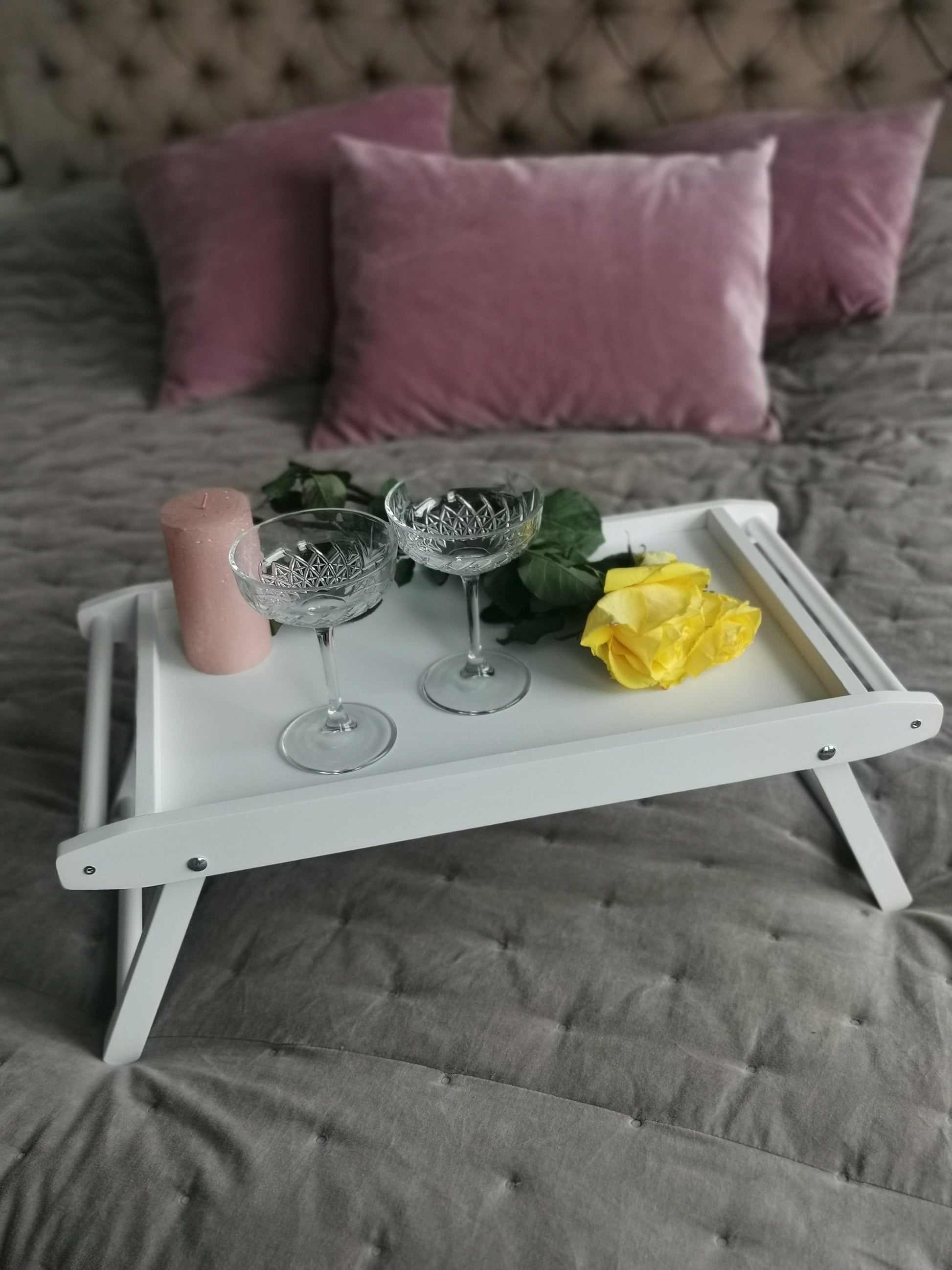 Solid and sturdy natural wooden bed tray and table in one with engraved personalization on it has an excellent and beautiful texture, serves you for a long time. Choose your favorite font for engraving and surprise your loved ones with this beautiful stuff as a Christmas, New Year, birthday, Mother's, Father’s Day, Valentine’s Day, housewarming, anniversary or wedding present. It’s perfect gift for friends, girlfriend or boyfriend, parents, brother and sister, his and her.