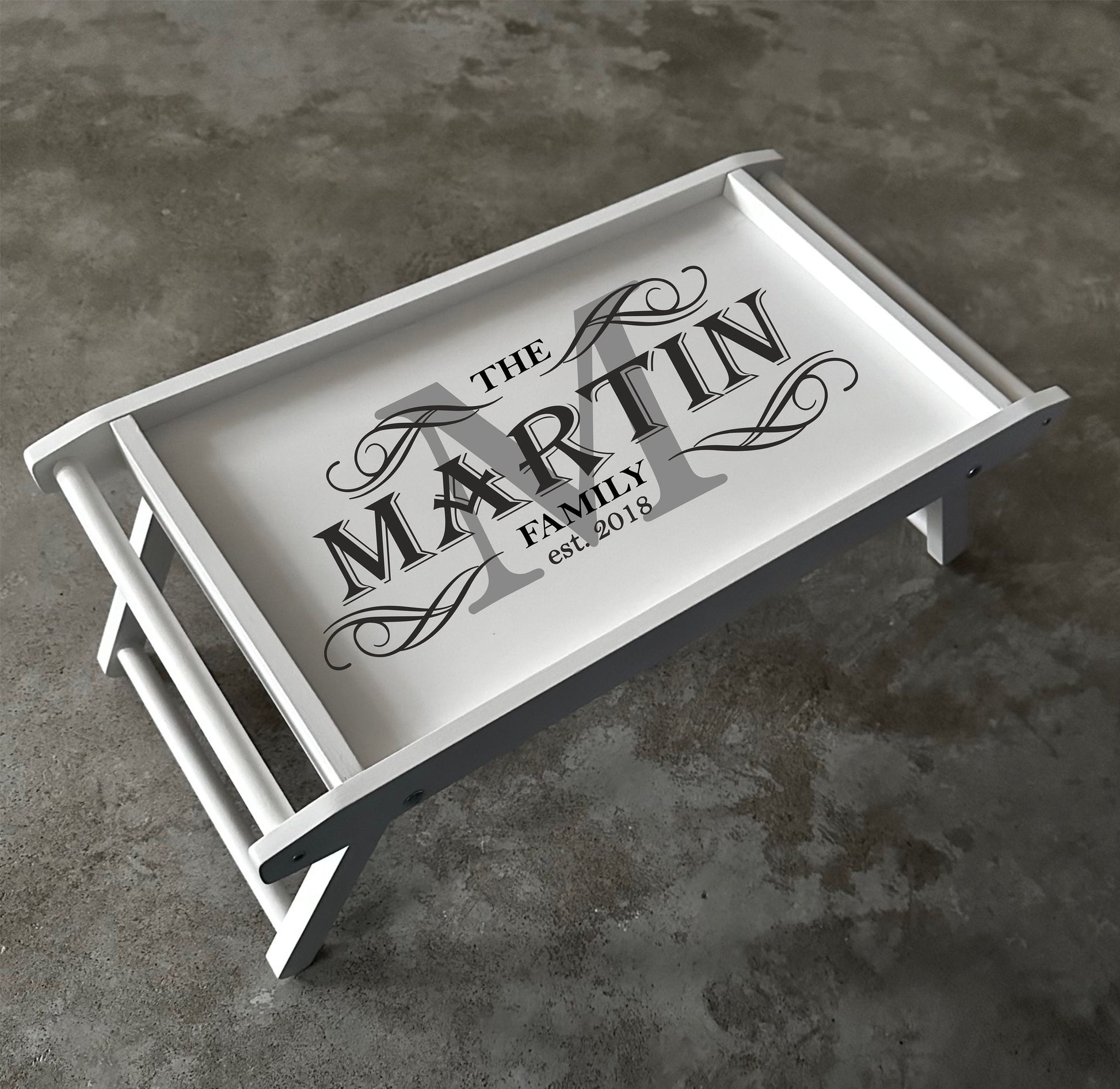 * LONG-LASTING PERSONALIZED STUFF. These trays are PRINTED by UV technology. It’s not stamped, not a sticker or vinyl. Engraving is easy to read and legible and the impression will remain forever. This tray and table in one is perfect for every day using and for more formal entertaining - enjoy future romantic dinner, anniversary events, or another special occasions.
