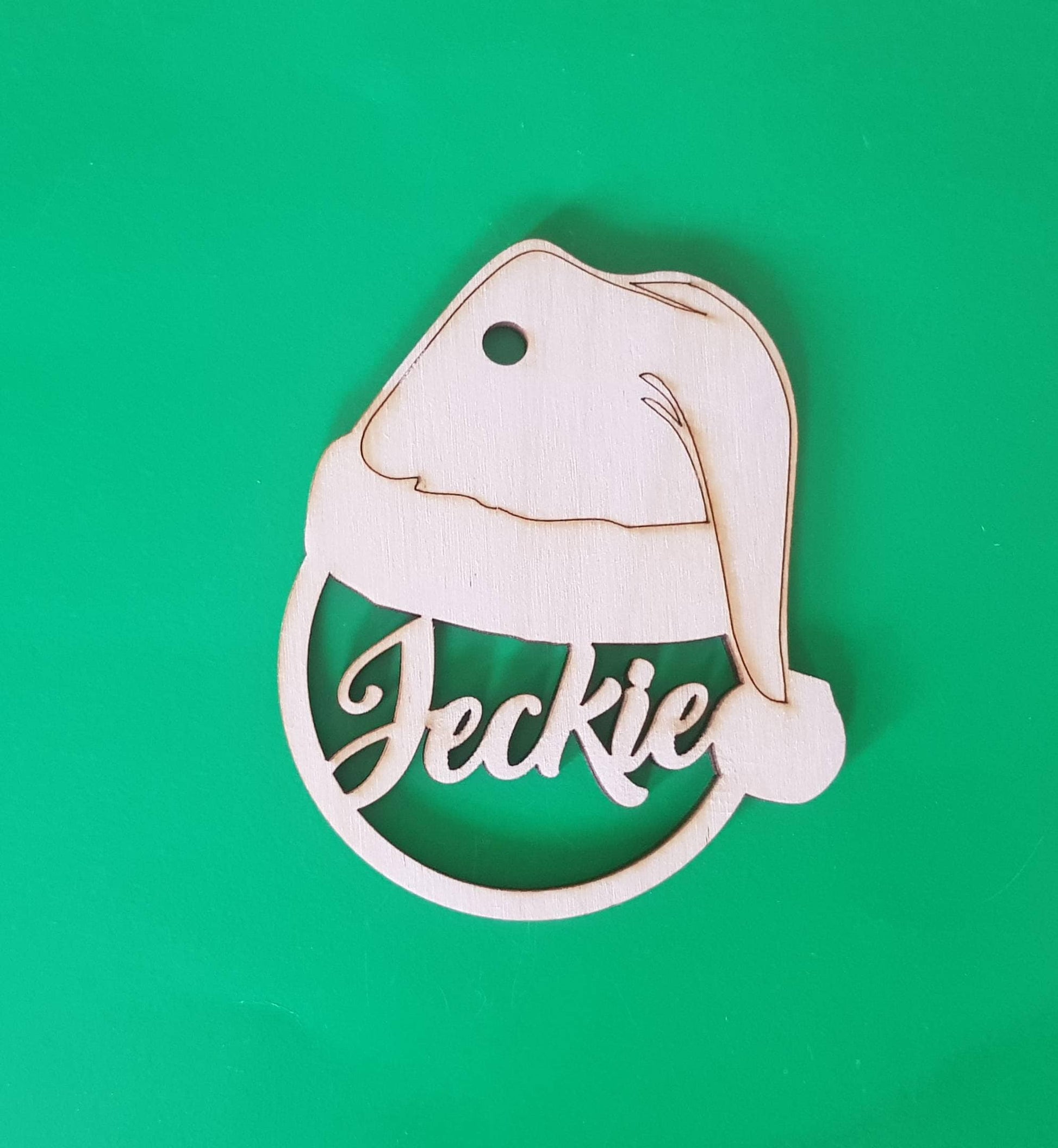 Personalized Wooden Christmas Ornament: Laser Cut Santa Gift Tag
