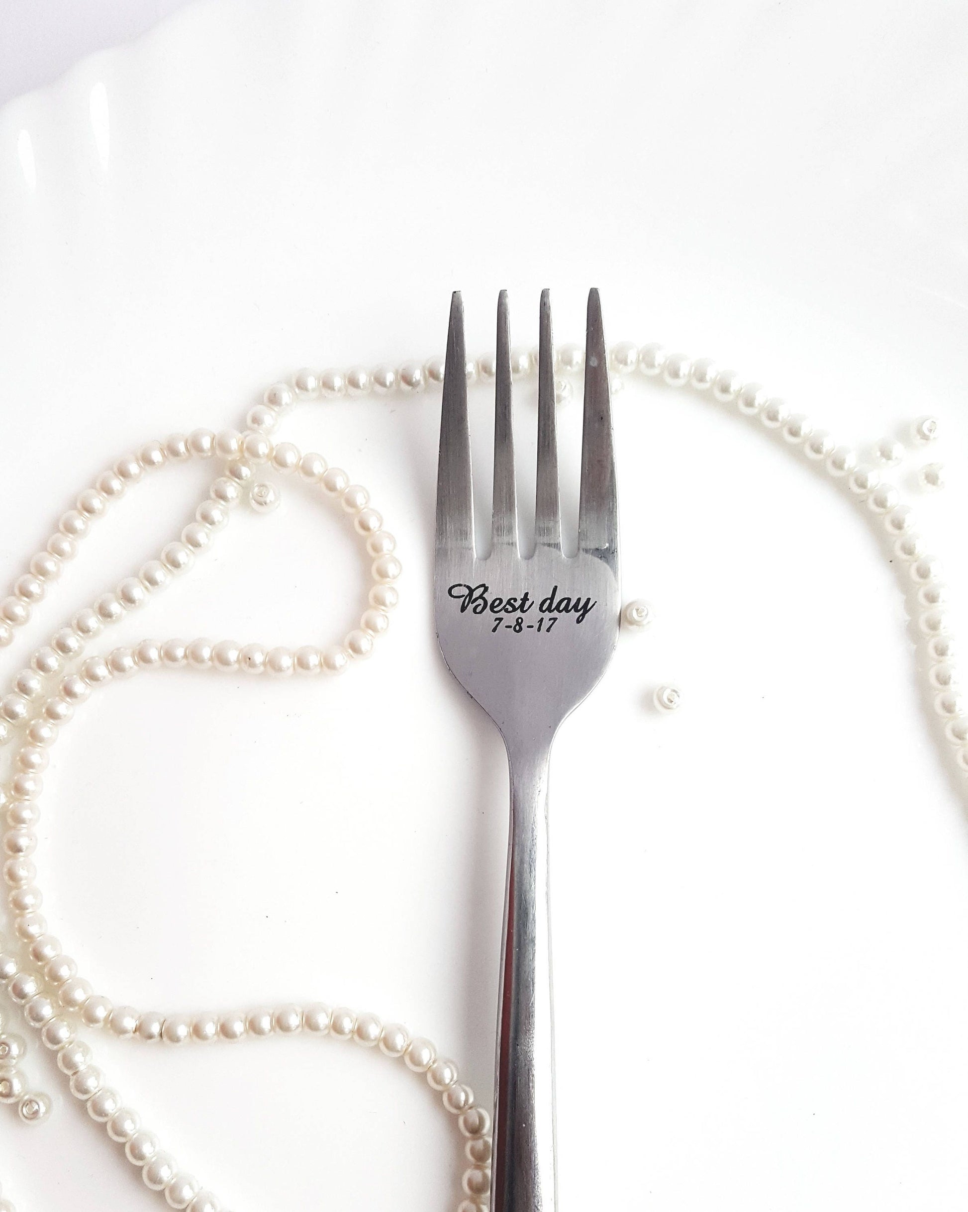 This listing is for two forks engraved with "Happy day (date) or Best day (date)".