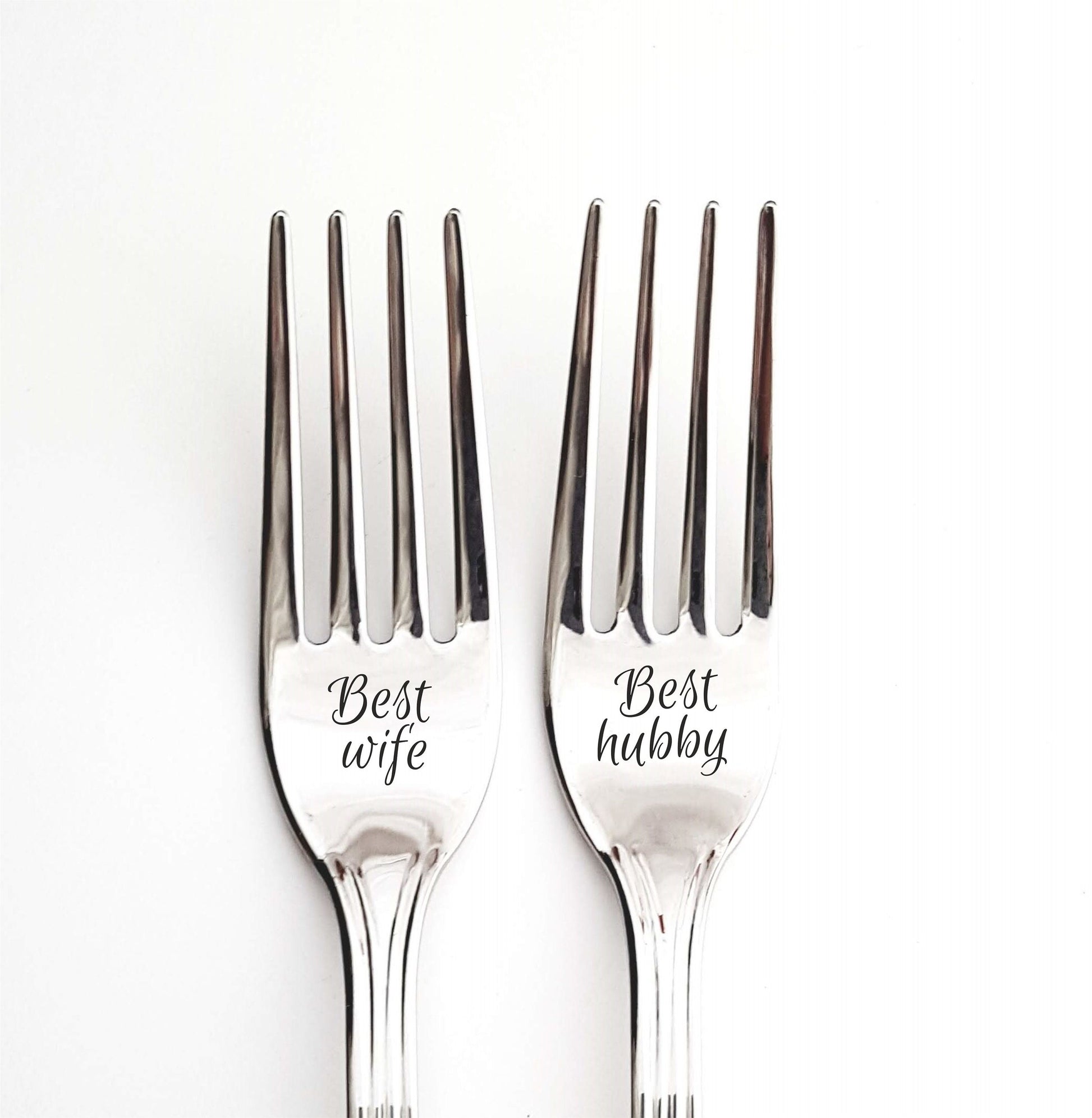 Wife husband Christmas gift for kitchen, first anniversary present for couple, engraved silver forks, personalized housewarming present