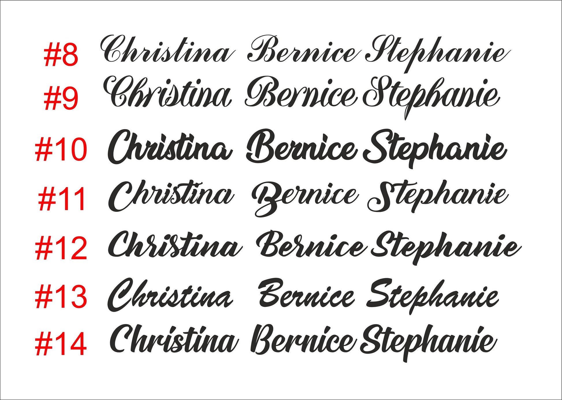 Each name with vary in length depending on how many letters it has in it (custom names from this listing are 5 - 16 cm long), the rough height of capital letter is 3-4 cm. Perfect size for a dinner plate!